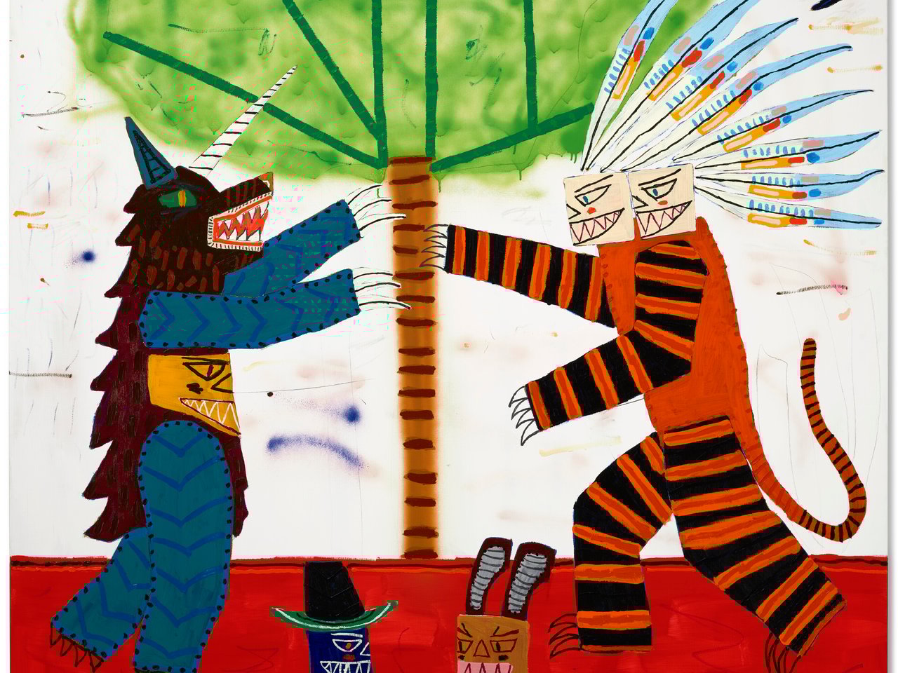 Oil, acrylic, spray paint and charcoal on canvas