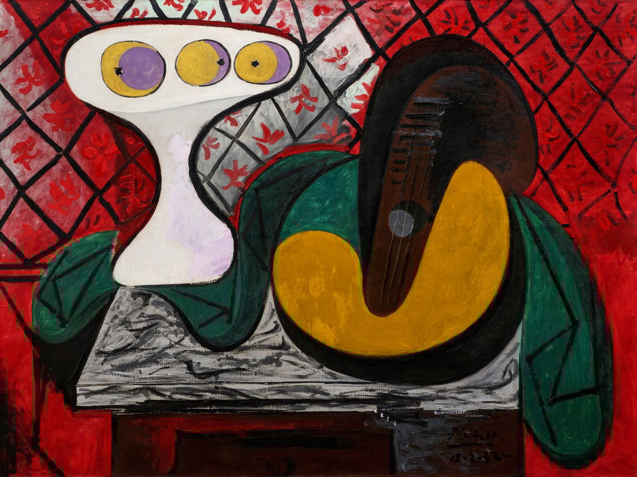 Paris, Paul Rosenberg, D"Oeuvres récentes de Picasso, 1936, no. 3, illustrated (titled Compotier de fruits et guitare )